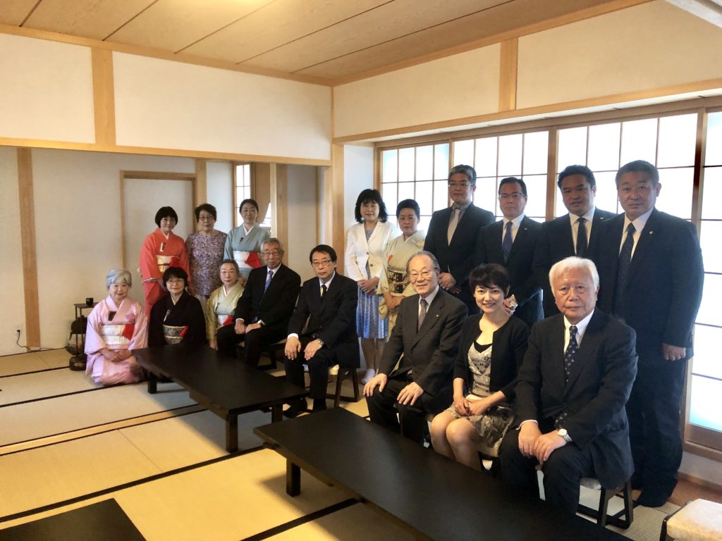 東久邇会長はじめ東京の会員さまは裏千家古家宗美社中の皆さんのお点前で爽やかな一服をいただきました。和やかになか、日本文化の継承には、より工夫をこらせて振興策が必要なと、熱のこもった話題が交わされました。